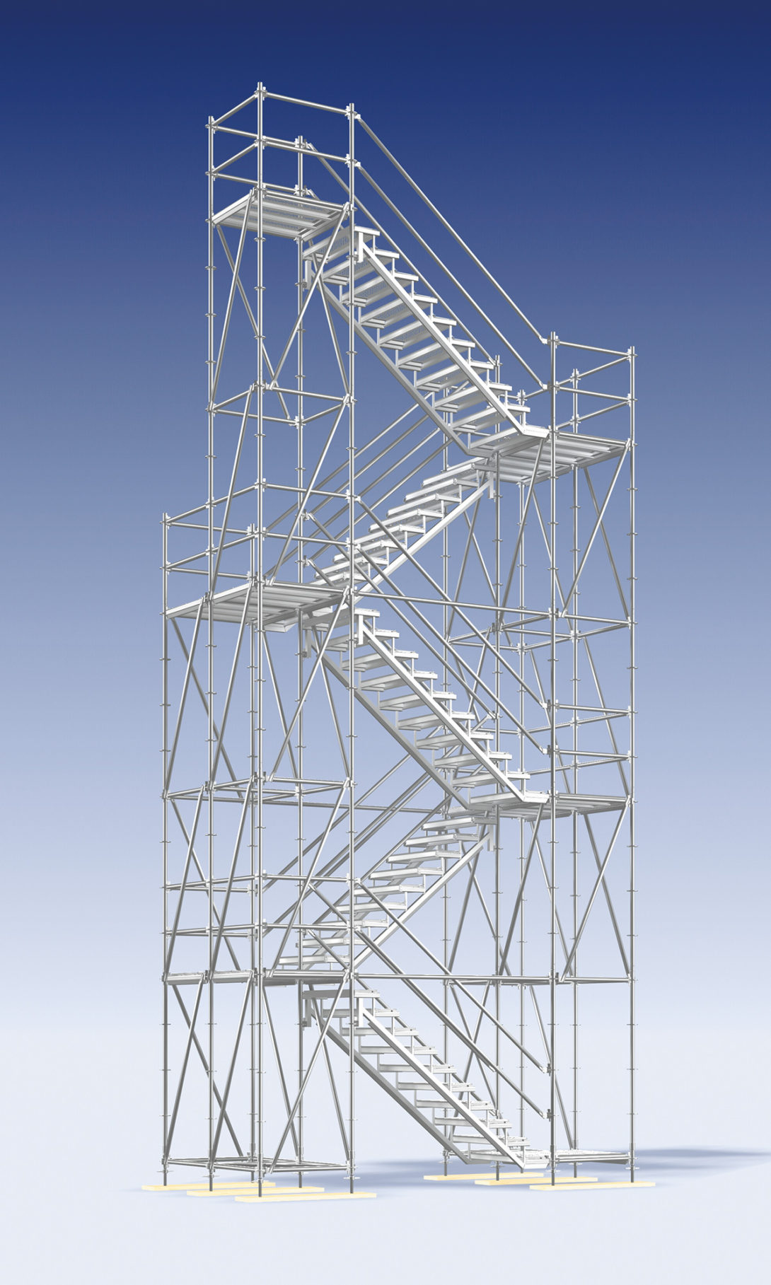 Flexibilita: Schodiskové veže môžu byť prispôsobené podľa rôznych podmienok na stavenisku, vrátane prispôsobenia výšky, šírky a orientácie schodov.