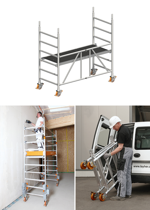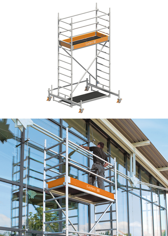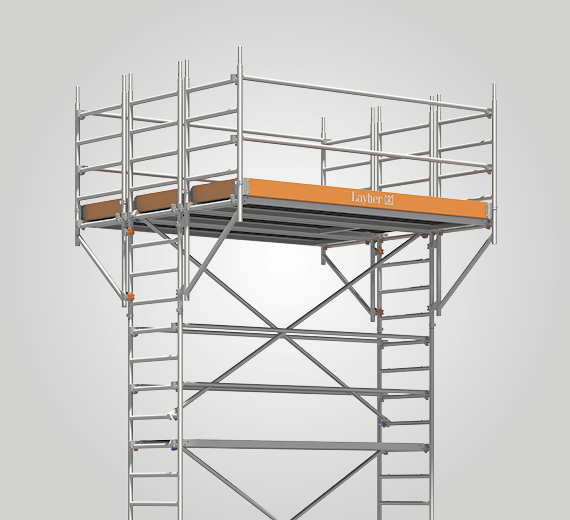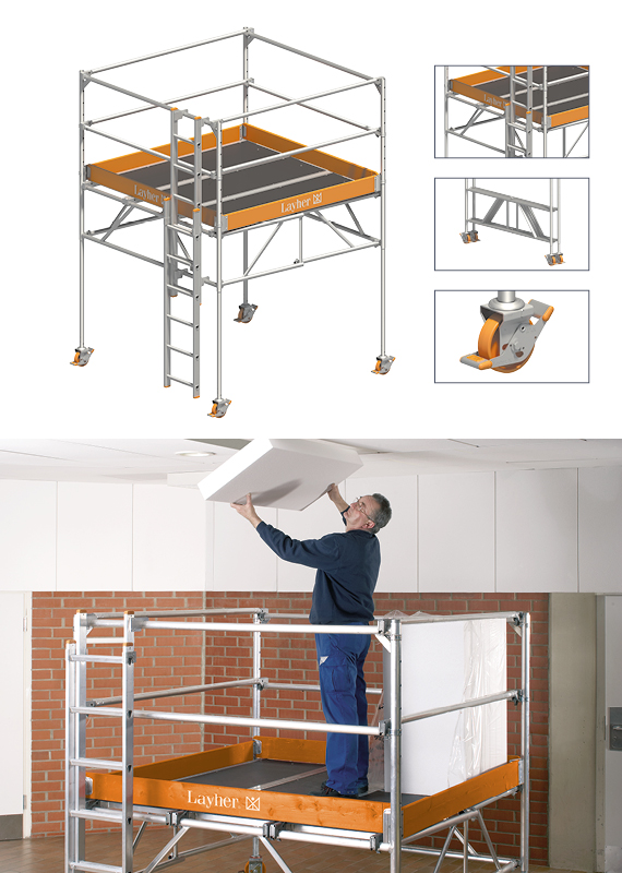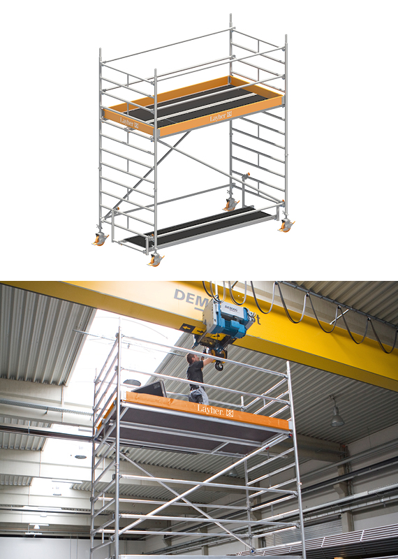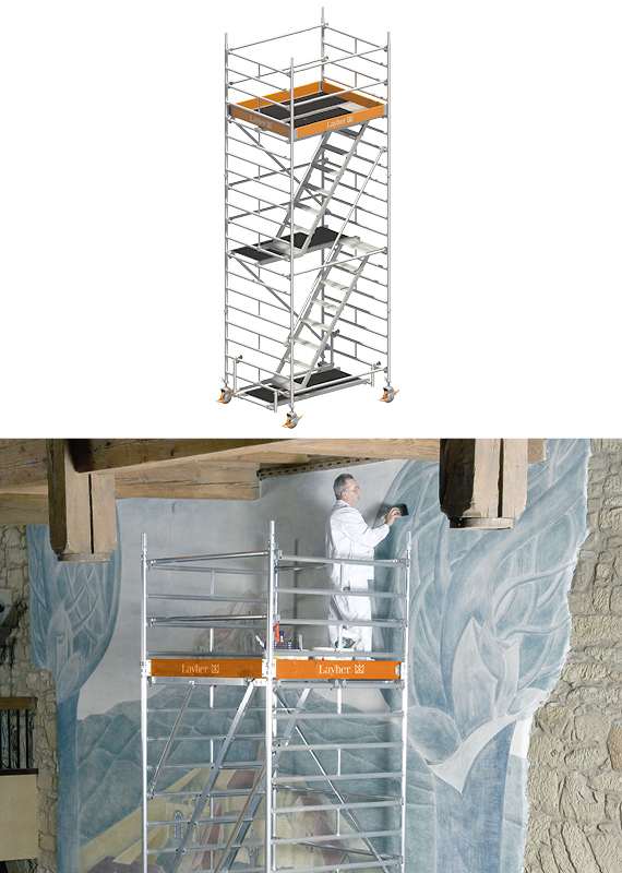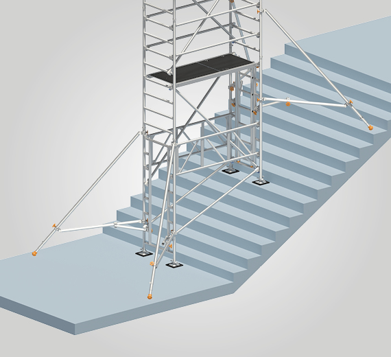 Stupňový set umožňuje bezpečnejšie a flexibilnejšie využitie častí mobilných veží v schodiskových priestoroch. Priestor nevyžaduje žiadne úpravy, pretože schodisko zostáva prístupné aj napriek lešeniu.
